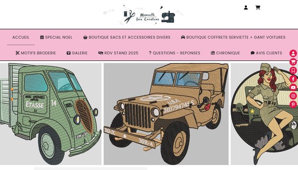 Passionnée de voitures américaines, françaises, collections, motos, pin up, je ne peux m'empêcher de les numériser et de les broder.