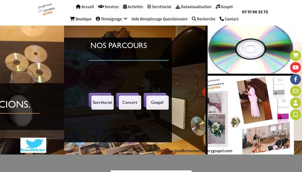 Goodfortune Secretary Gospel intervient dans le secrétariat, Datavisualisation et dans les événements du Gospel. Prise de contact par email goodfortunesecretarygospel@gmail.com et je vous apporte une réponse dans les deux jours ouvrés.