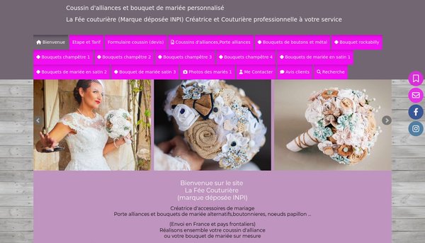 Créatrice de coussin d'alliance et de bouquet de mariée. Un accessoire à votre image ou selon le theme de votre mariage. Des créations artisanales française par la fée couturière.