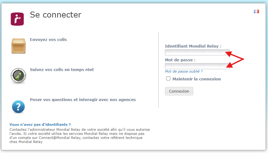 Pour ce faire, allez sur le Connect de Mondial Relay et connectez vous grâce à vos identifiants Mondial Relay.