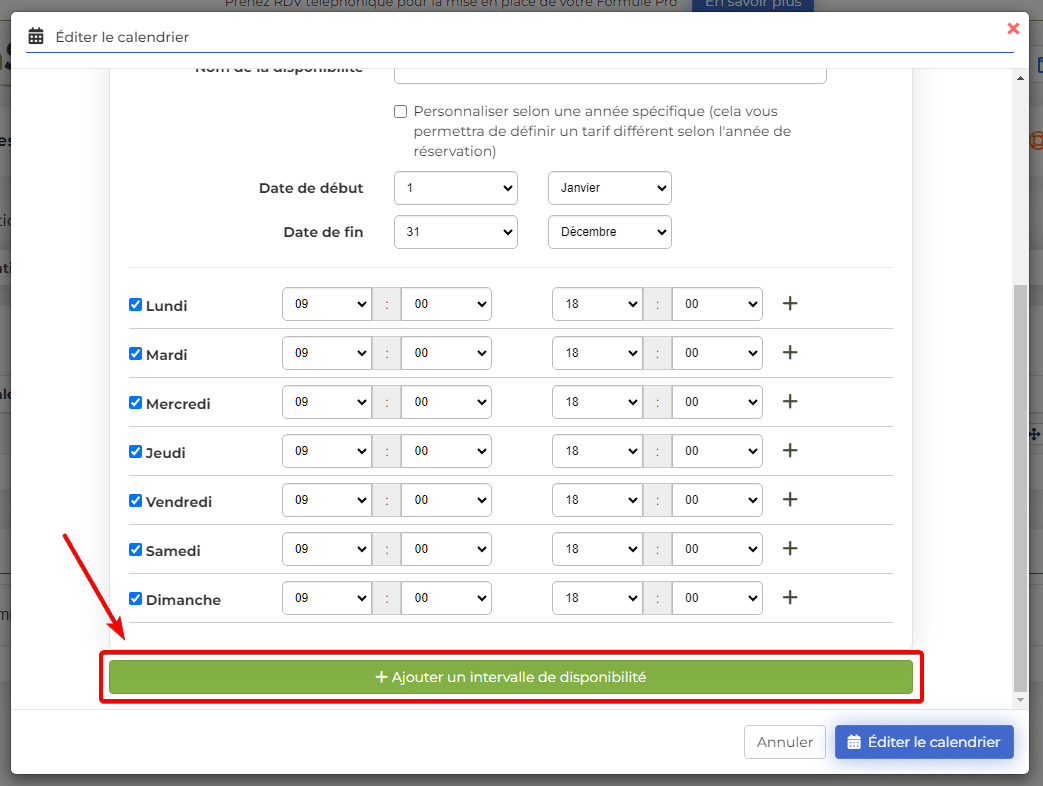 Ajouter un intervalle de disponibilités